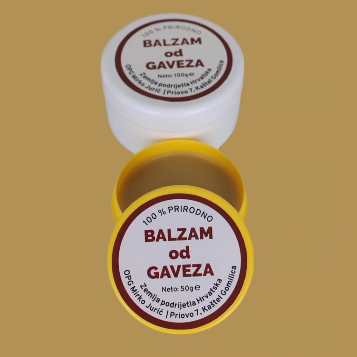 Gavez je biljka koja se koristi još od srednjeg vijeka. Uvijek se smatrao biljkom koja je prikladna za sve probleme vezane za kosti. Balzam od gaveza zbog svojih kemijskih svojstava ima provjereno i izuzetno dobro djelovanje protiv išijasa, hemeroida, hematoma, udaraca i uganuća te ostalih unutarnjih povreda kostiju i zglobova.